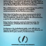 Está clase de hechos son clara consecuencia de la violencia mediática incitada hacia la figura de la Vice Presidenta, desde los medios de comunicación, y parte de una dirigencia política.