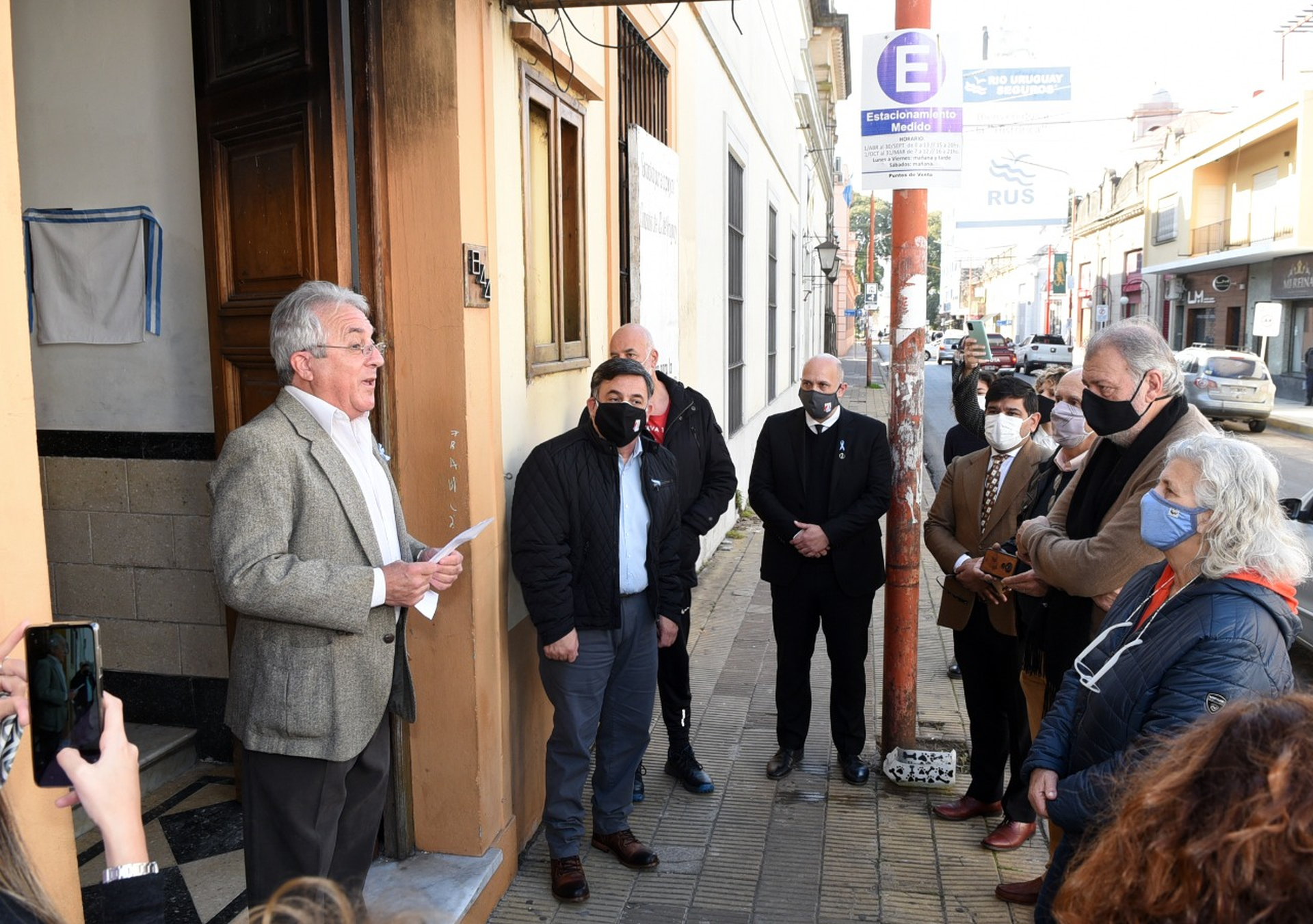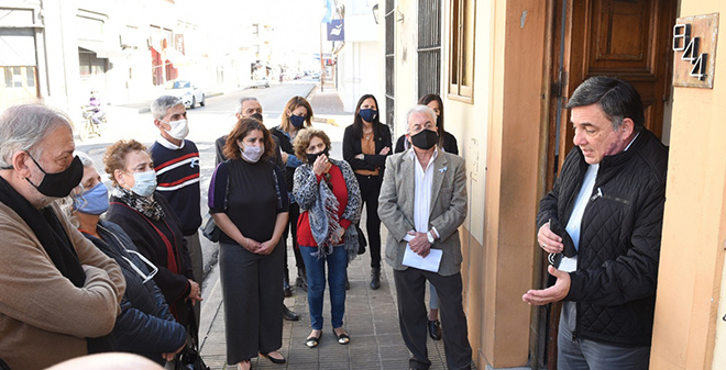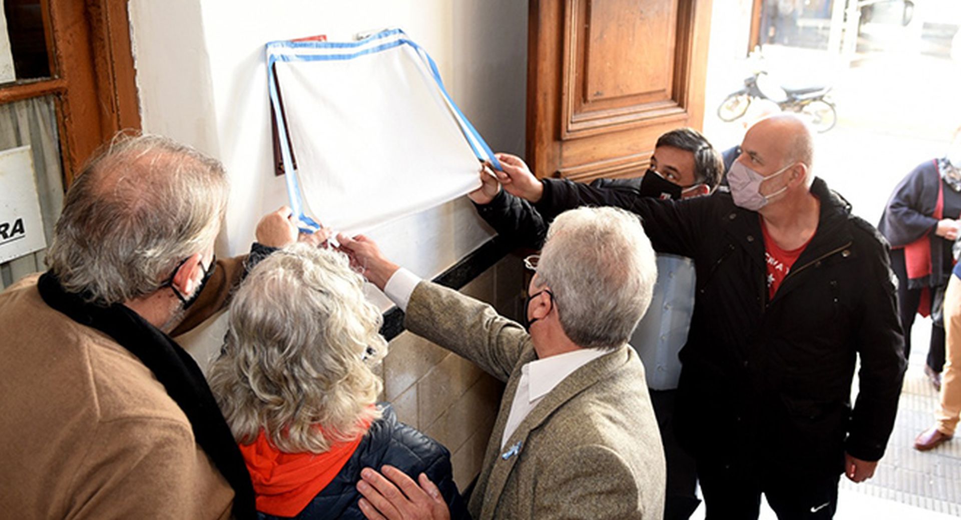 A continuación, los mencionados junto a Daniel Dalmaroni, representando a Argentores y Marita De Michele,(hija del «Gringo»), descubrieron sendas Placas en el Hall de la Casa. Posteriormente los asistentes ingresaron a la sala, para poder observar el avance de los trabajos que se vienen realizando.