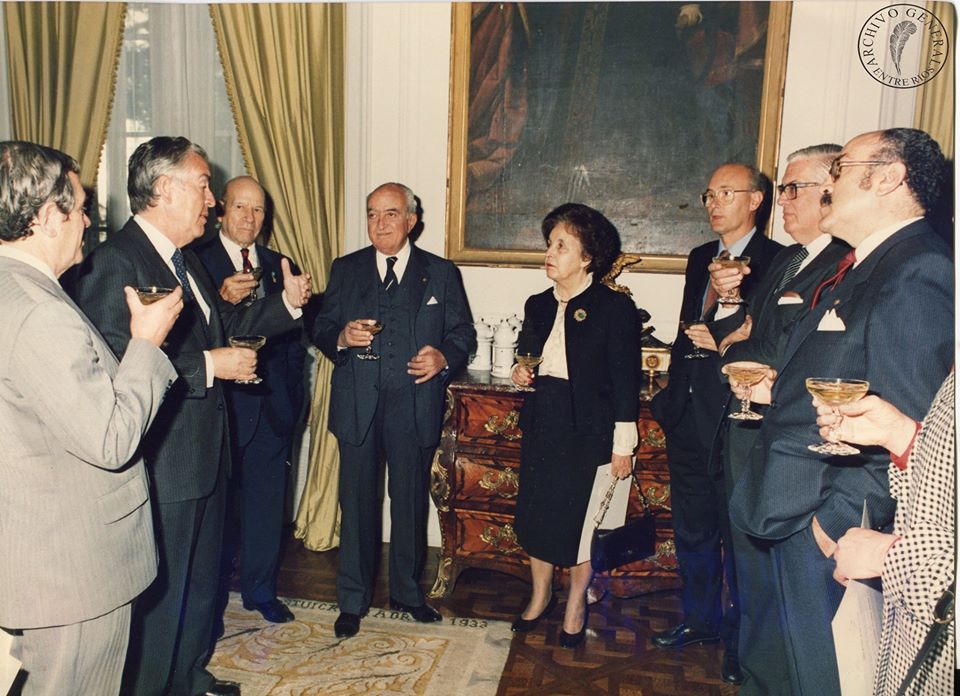 Fotografía: Beatriz Bosch, primera mujer que se incorpora a la Academia Nacional de la historia. Ceremonia en la Embajada de España. Bs.As. 1988.