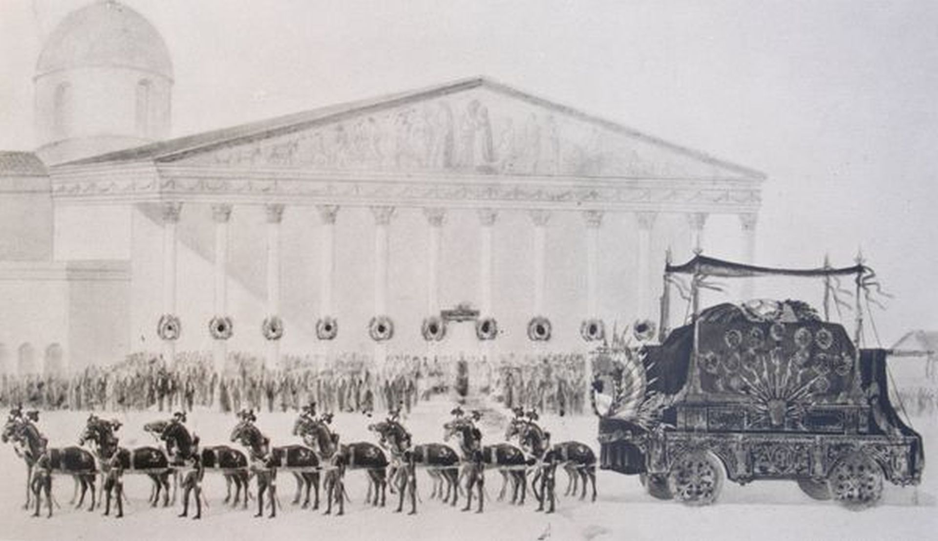 Cargado de flores que le lanzaban, el féretro fue escoltado hasta el monumento del Libertador, en Plaza San Martín. Luego de un emocionante discurso del presidente Avellaneda, el cajón fue colocado en una carroza fúnebre (réplica de la que transportó el cuerpo de Wellington a la Catedral de Londres en 1852). El cortejo marchó por la calle Florida hasta la Plaza de Mayo y el ataúd fue depositado en la nave central de la Catedral Metropolitana.