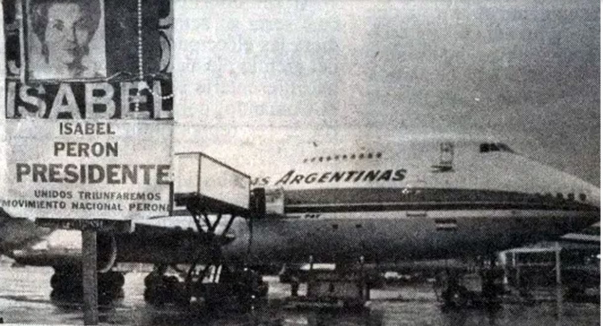 Luego de una visita de casi 20 días a la Argentina, el 8 de junio de 1984 la viuda de Perón se disponía a abordar un vuelo de Aerolíneas Argentinas para volver a Madrid cuando una inspección de rutina descubrió un explosivo que se activaría con un sofisticado mecanismo y estallaría cuando el Jumbo 747 estuviera en vuelo. La respuesta del gobierno de Raúl Alfonsín y la búsqueda de los culpables.
