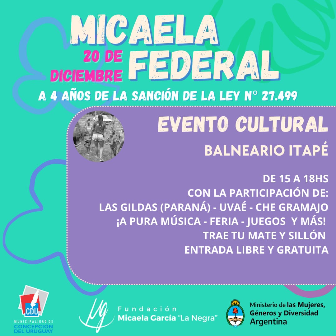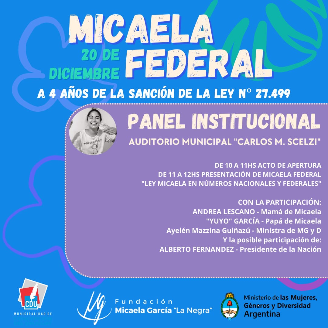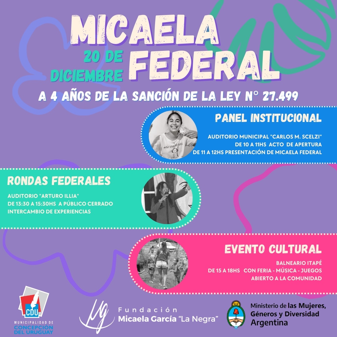 Se cumplen cuatro años de la sanción de la Ley N° 27.499, por lo cual se realizará en Concepción del Uruguay el encuentro “Micaela Federal”. Será el martes 20 de diciembre, según un amplio programa que contará con la presencia de autoridades nacionales y provinciales.