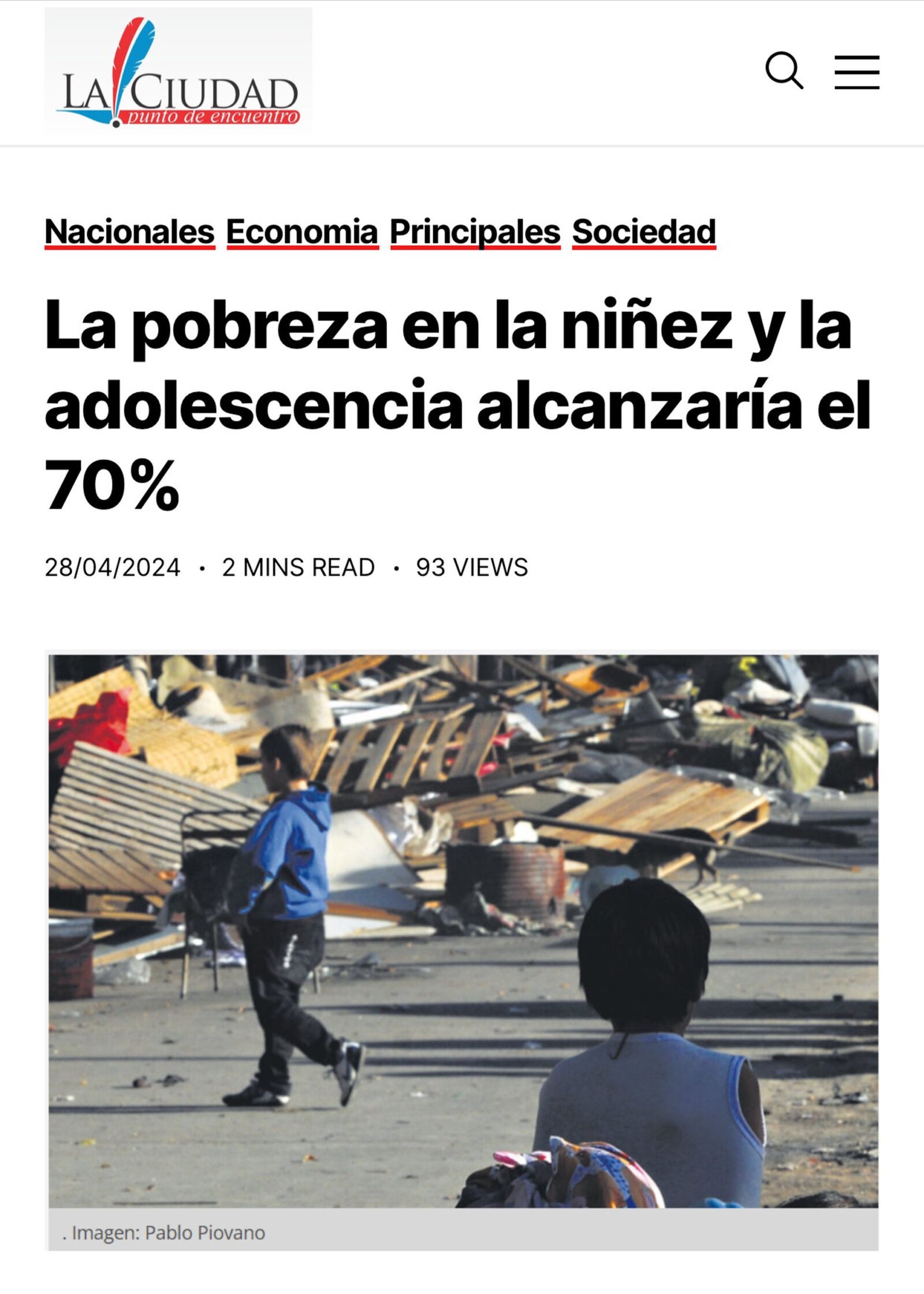 En el día de ayer La Ciudad replica una nota de Página 12 que refleja que el 70 % de los niños y adolescentes de nuestro país son pobres y el 34% llegarían a la indigencia (ver
