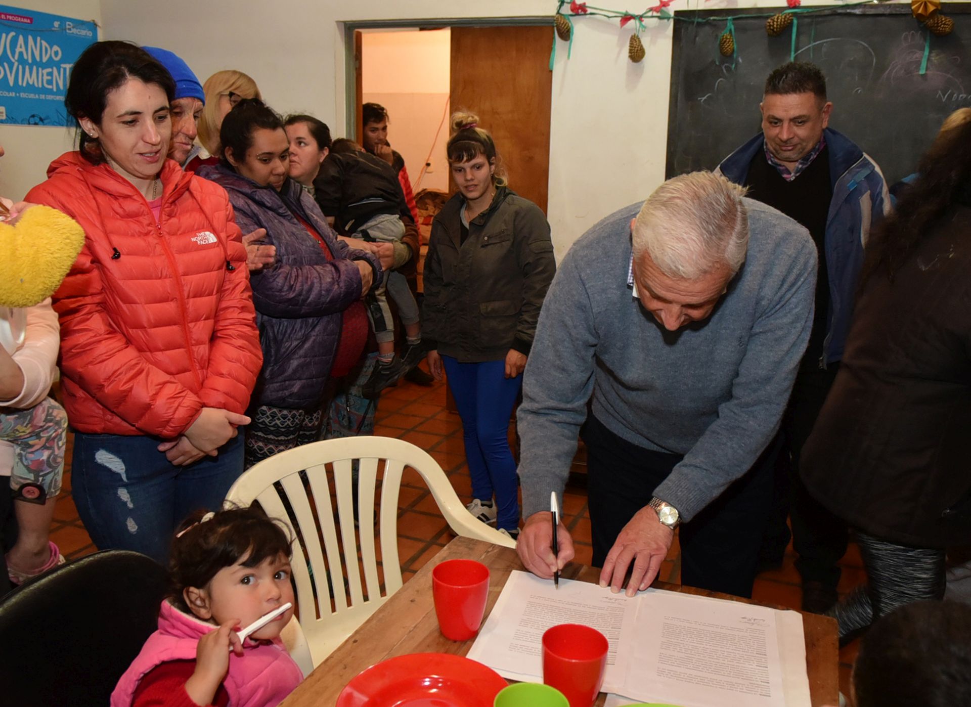 A través de la firma de un convenio entre el Intendente y los vecinos del SUM, la Municipalidad entrega en comodato por dos años una cocina industrial para que sea utilizada en el salón para la preparación de la comida.