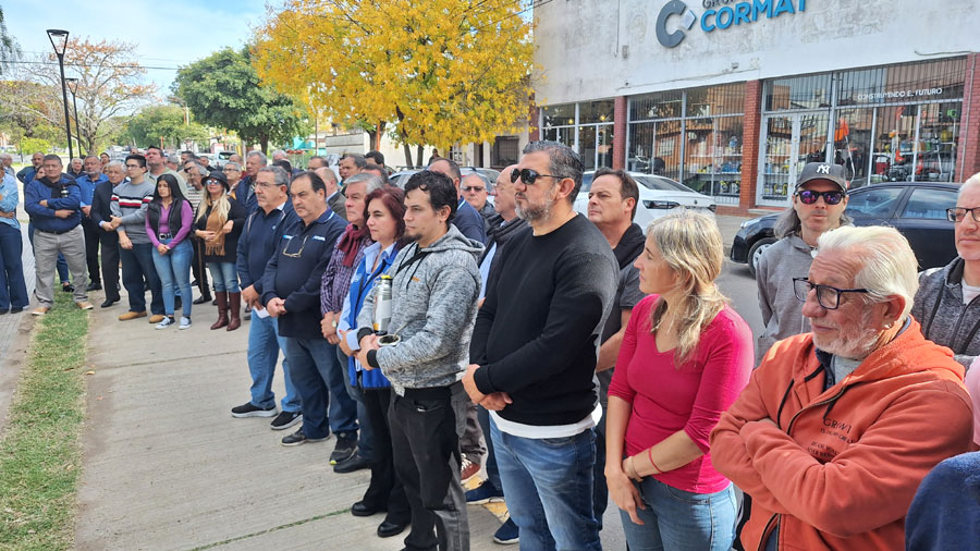 Finalizado el acto en Plaza Constitución, las autoridades políticas y representantes gremiales, se concentraron a las 11 en la plazoleta del bulevar Yrigoyen, en el Monumento al Trabajador.