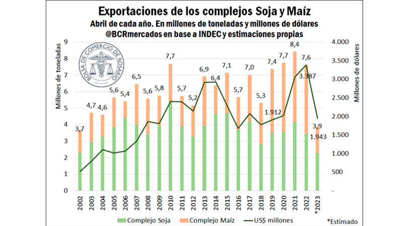 El dato es significativo habida cuenta que los complejos de soja y maíz son los dos que más dólares aportan a la economía argentina.
