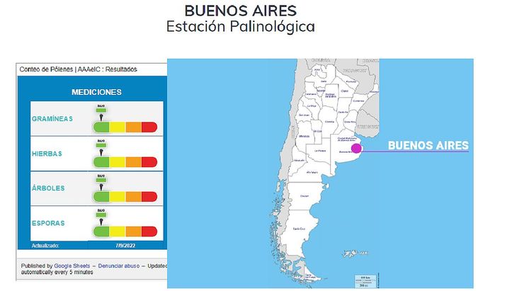 Todo aquel interesado en conocer estos datos, puede ingresar haciendo clik acá y revisar la información. En cada estación se observa un gráfico con colores que indica la concentración del pólen:
