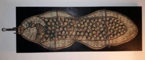 Imagen: PEZ CÓSMICO II -Arcilla blanca, òxidos, esmaltes y vidrio (obra de 80 cm) – obra de Hugo Rubén Pérez
