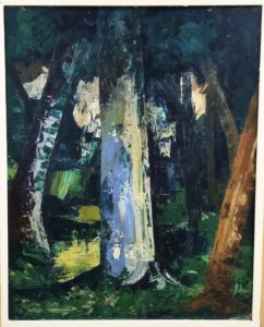 Bosque de botellas enterradas. Óleo de César Schepens.