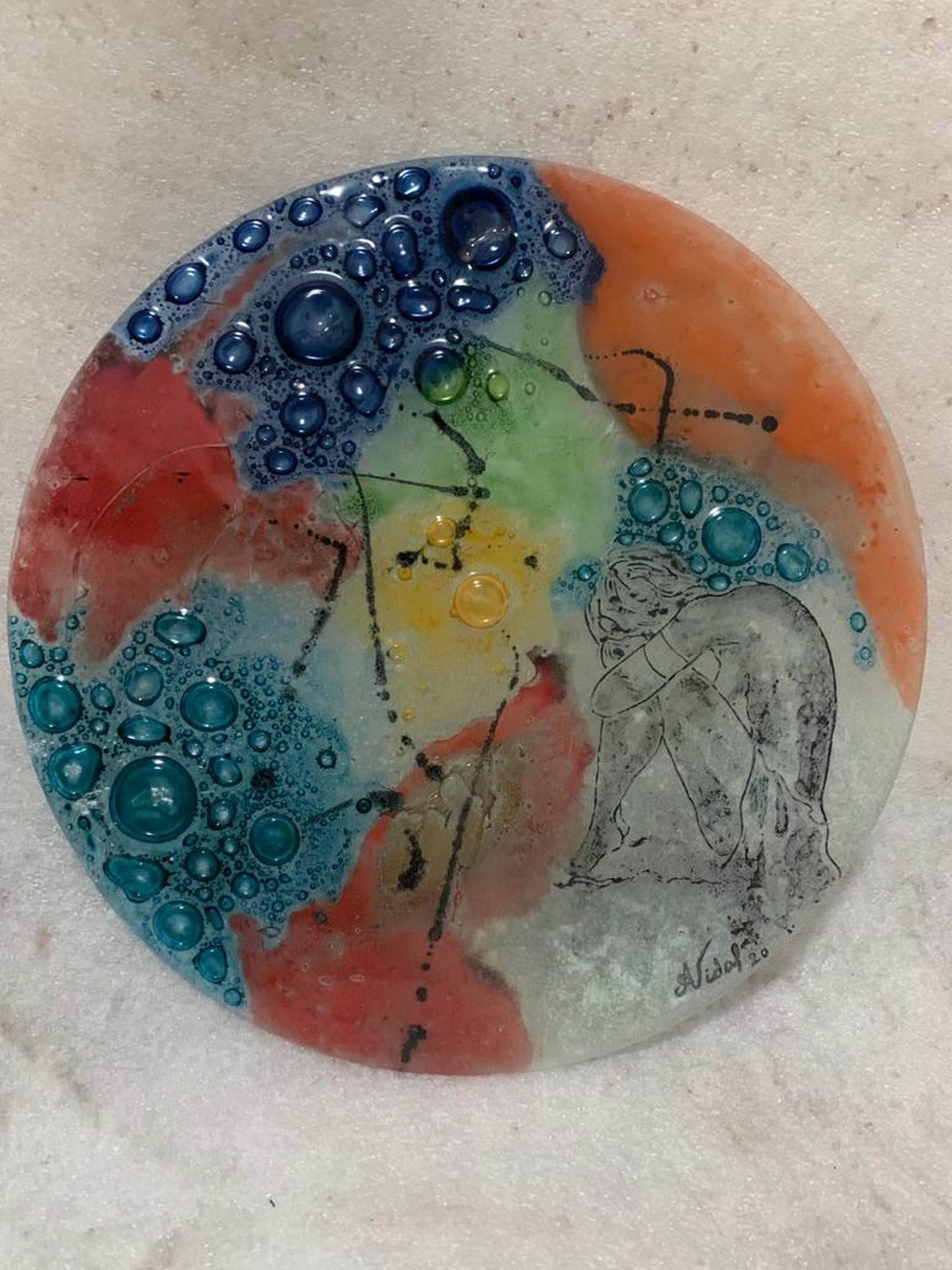 «Encierro en épocas de Pandemia», medidas 45 cm diám., misma técnica.