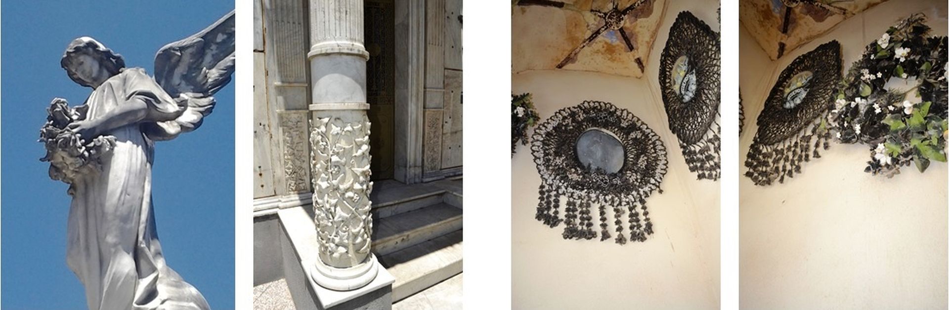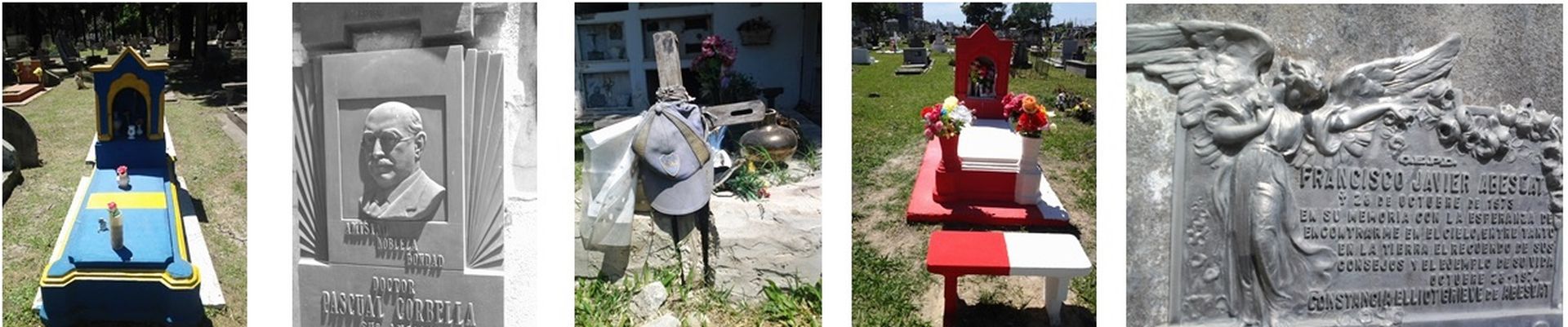Un párrafo aparte les corresponde a la estatuaria, placas -en bronce y mármol-, antiguos elementos que componían el cortejo fúnebre –coronas, flores, cobertores de féretros, propios de los modos de entierro o colocación en panteones que van cayendo en desuso.