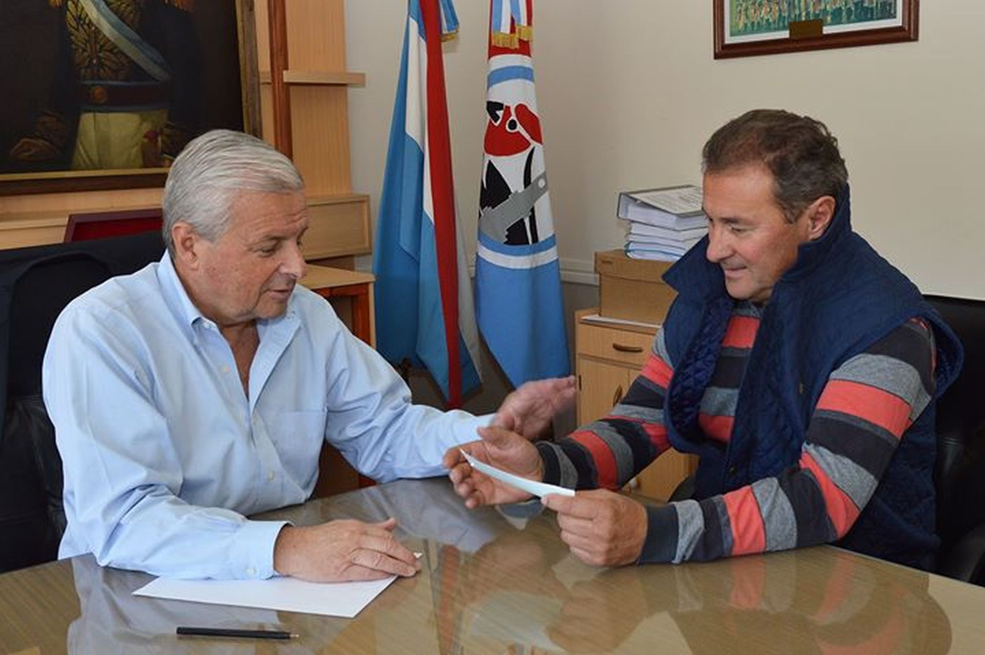 El presidente municipal José Eduardo Lauritto hizo entrega esta mañana de un aporte de 25.000 pesos a las autoridades del Jockey Club Uruguay, suma que será destinada a la realización de la extraordinaria reunión hípica del venidero domingo en Concepción del Uruguay, que incluye el clásico “General José de San Martín”.