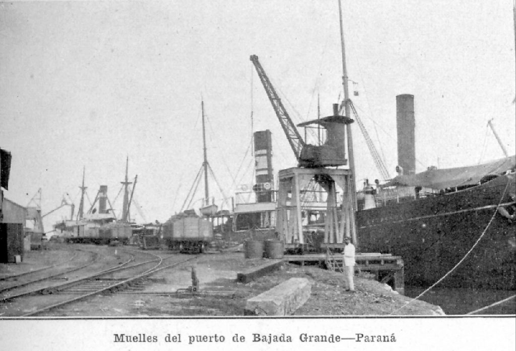 El Puerto de Bajada Grande, se ubicó en el ángulo noroeste que forma el río al cambiar su curso noreste – noroeste al de noroeste – suroeste. Fue inaugurado como puerto de ultramar en la década de 1890 siendo kilómetro 0 del Ferrocarril que había pasado a manos de la compañía inglesa en tiempos del Gobernador Sabá Z. Hernández.