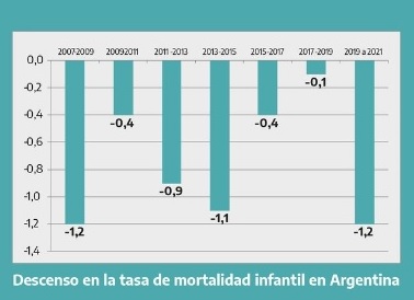 El Gobierno informó que en la «Argentina la tasa de mortalidad infantil –cantidad de defunciones de niñas y niños menores de 1 año que ocurren cada mil nacidos vivos- descendió a 8 por mil en 2021, lo cual respecto de la tasa de 9,2 por mil registrada en 2019 significa una disminución de más de un punto en dos años«, por lo que «se trata del menor valor histórico registrado».