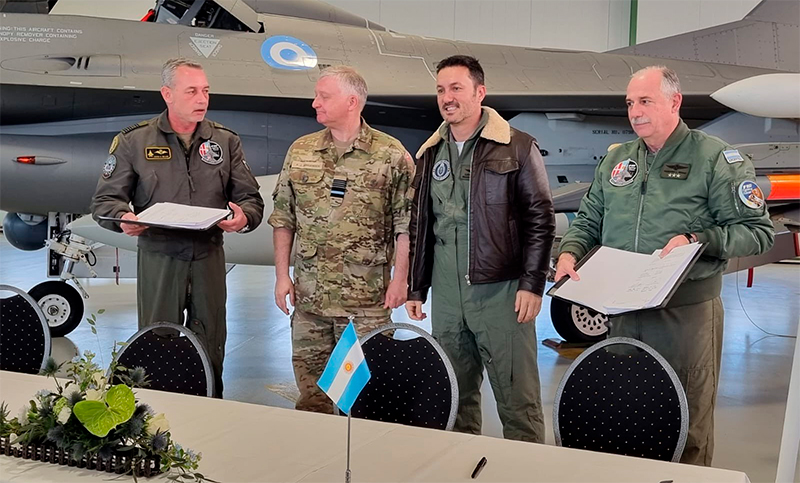 Argentina concretó durante la mañana de este martes la compra de veinticuatro aviones de combate F-16, usados, a Dinamarca. Fue el ministro de Defensa, Luis Petri, quien encabezó la firma del acuerdo en la ciudad danesa de Copenhague, mientras que el presidente, Javier Milei, estuvo presente en el evento de forma virtual. La transacción fue avalada por el gobierno de Estados Unidos.