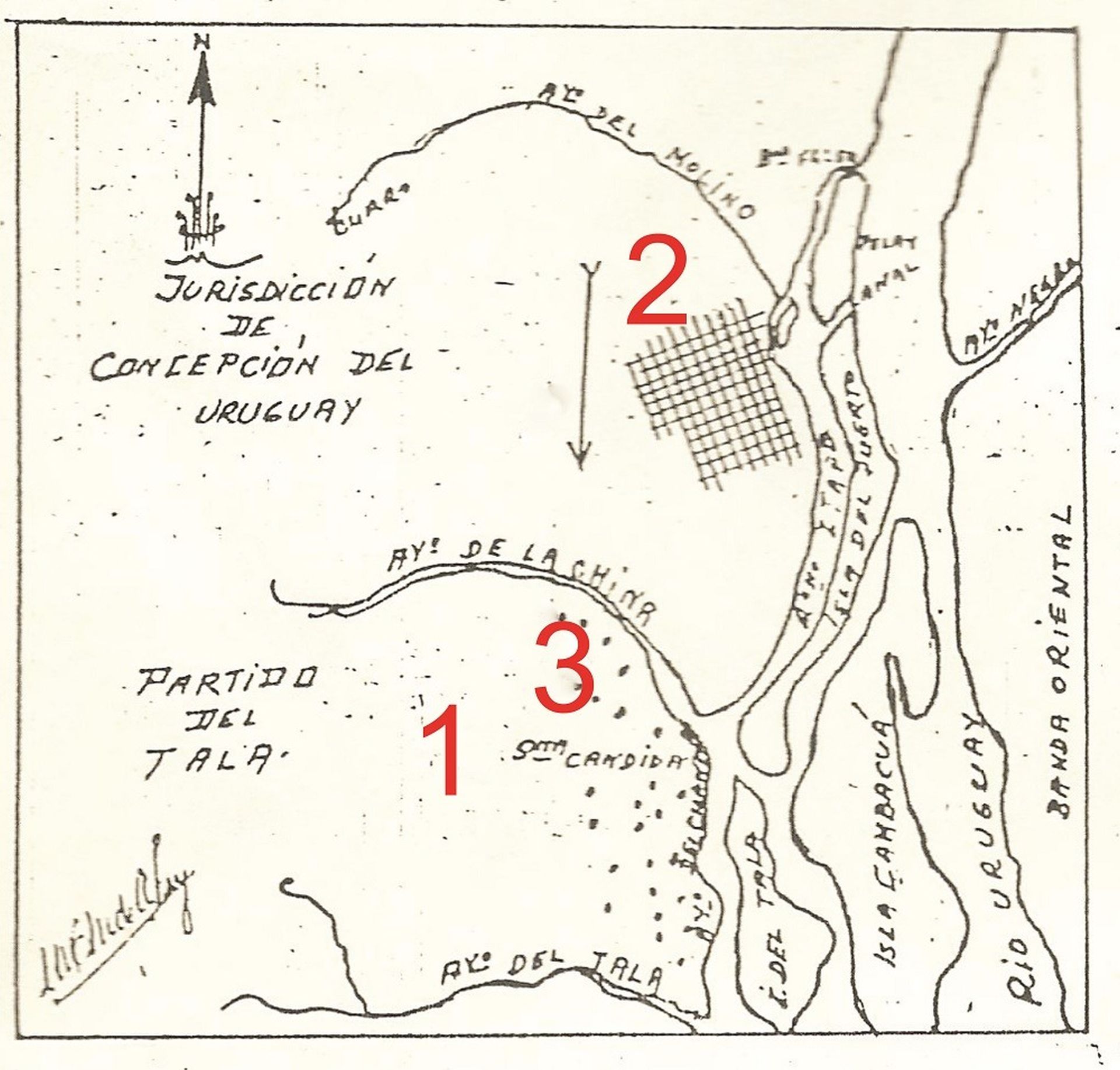 Entre los arroyos “de la China” y “del Tala” se asentaron numerosas familias que fueron expulsadas violentamente de las cercanías del arroyo “El Gato” por el terrateniente Justo García de Zuñiga, marcharon hacia el norte y la costa del río Uruguay , localizándose a orilla del arroyo “de la China”, sumándose a los ya radicados en ese lugar.