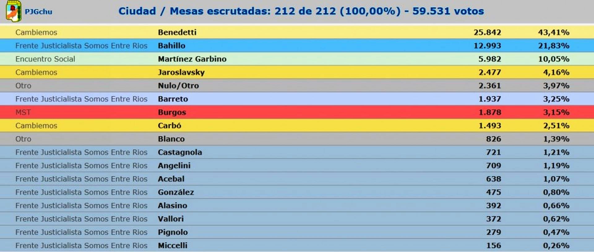 “Nos falta tanto en la provincia (…), pero quiero que me permitan rescatar los números de mi departamento, del departamento de Gualeguaychú, donde le hemos ganado a nuestro adversarios por mas del doble de votos”.