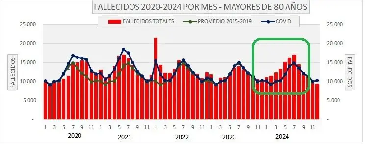 Para la doctora Alejandra Sánchez Cabezas, presidenta de la Asociación Argentina de Salud Pública, «lo primero que proponen los datos de mortalidad en el país entre 2020 y 2024 es una pregunta abierta, incómoda y todavía sin respuesta clara: qué está pasando con las muertes en las personas mayores. Durante la pandemia, el patrón fue esperable: el exceso de mortalidad se concentró en edades avanzadas, con un pico muy marcado en 2021. Lo que resulta menos claro es lo que ocurre después. En 2023, los números bajan. En 2024, vuelven a subir. No al nivel del pico pandémico, pero lo suficiente como para romper con la idea de un retorno simple a la situación previa. Lo que pareciera que no es un dato aislado, sino un cambio de tendencia».
