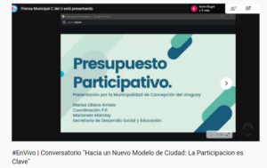 Nuestro municipio estuvo representado por Marisa Arrieta, coordinadora de Presupuesto Participativo, acompañada por la secretaria de Desarrollo Social, Marianela Marclay. A su turno, Arrieta expuso sobre las experiencias en nuestra ciudad del Programa Presupuesto Participativo y del trabajo que se viene realizando desde la coordinación para poder implementarlo en contexto de pandemia o endemia.