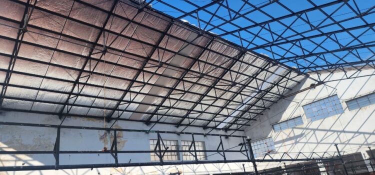 Operarios de la empresa responsable de la obra retiraron las viejas chapas de fibrocemento y realizaron reparaciones en la estructura para la colocación del nuevo techo que habrá de completarse en los próximos días.