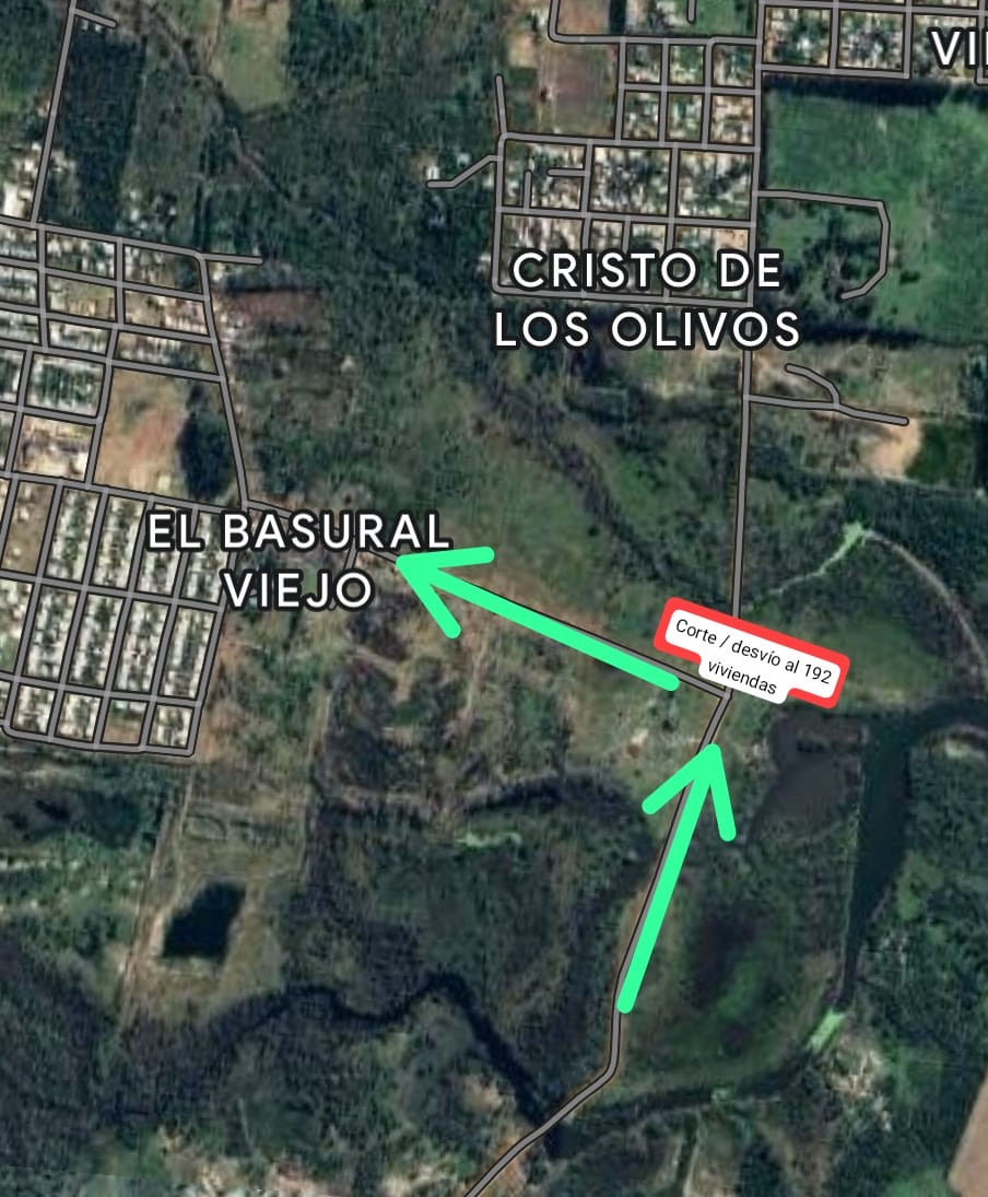 Quienes vengan del sur de la ciudad, zona Talitq y alrededores, deberán desviar su recorrido hacia el 192 viviendas, para acceder a la ciudad por calles Sarmiento o Acceso Bruno.