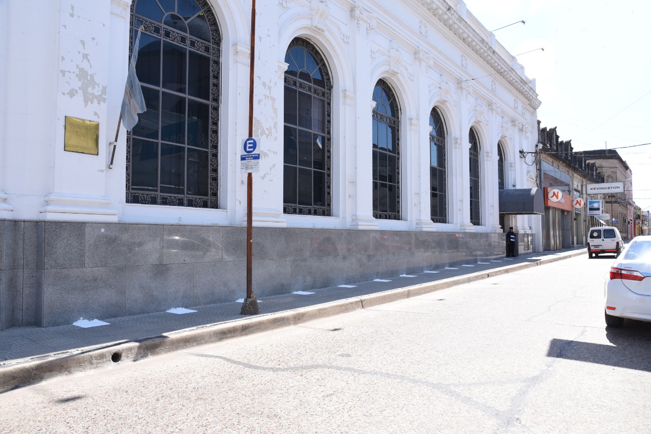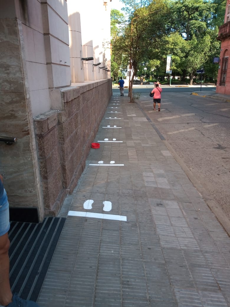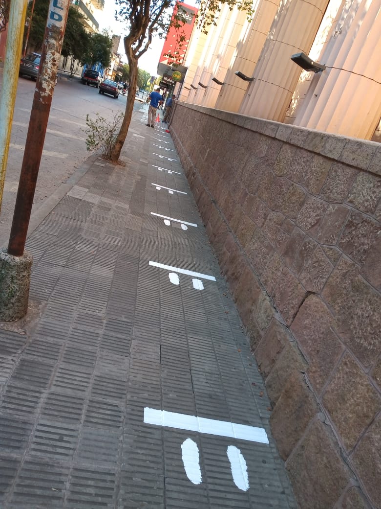 En el marco de la emergencia sanitaria que atraviesa el país por la pandemia COVID-19 la Municipalidad realizó gestiones ante los bancos locales para que realicen el pintado de líneas en las veredas para marcar la distancia de personas al momento de la espera.