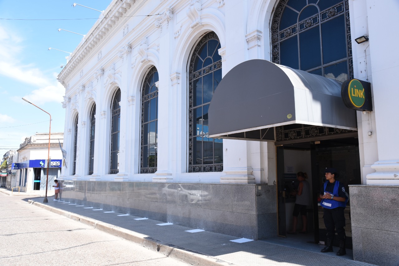 “Por pedido expreso del Intendente se pidió colaboración durante la mañana de este lunes a los bancos que tienen sus sucursales en nuestra ciudad para que realicen el pintado de líneas en las veredas, para que quienes que se acerquen a los cajeros automáticos tengan presente la distancia que debe mantenerse entre personas al momento de la espera, algunos bancos como el Nación y el BERSA ya pintaron estas líneas, otros bancos aguardan aún la autorización que ya gestionaron este lunes a sus superiores para poder hacerlo, los gerentes locales se manifestaron a favor de la medida” expresó Juan Martín Garay, secretario de Gobierno de la Municipalidad.