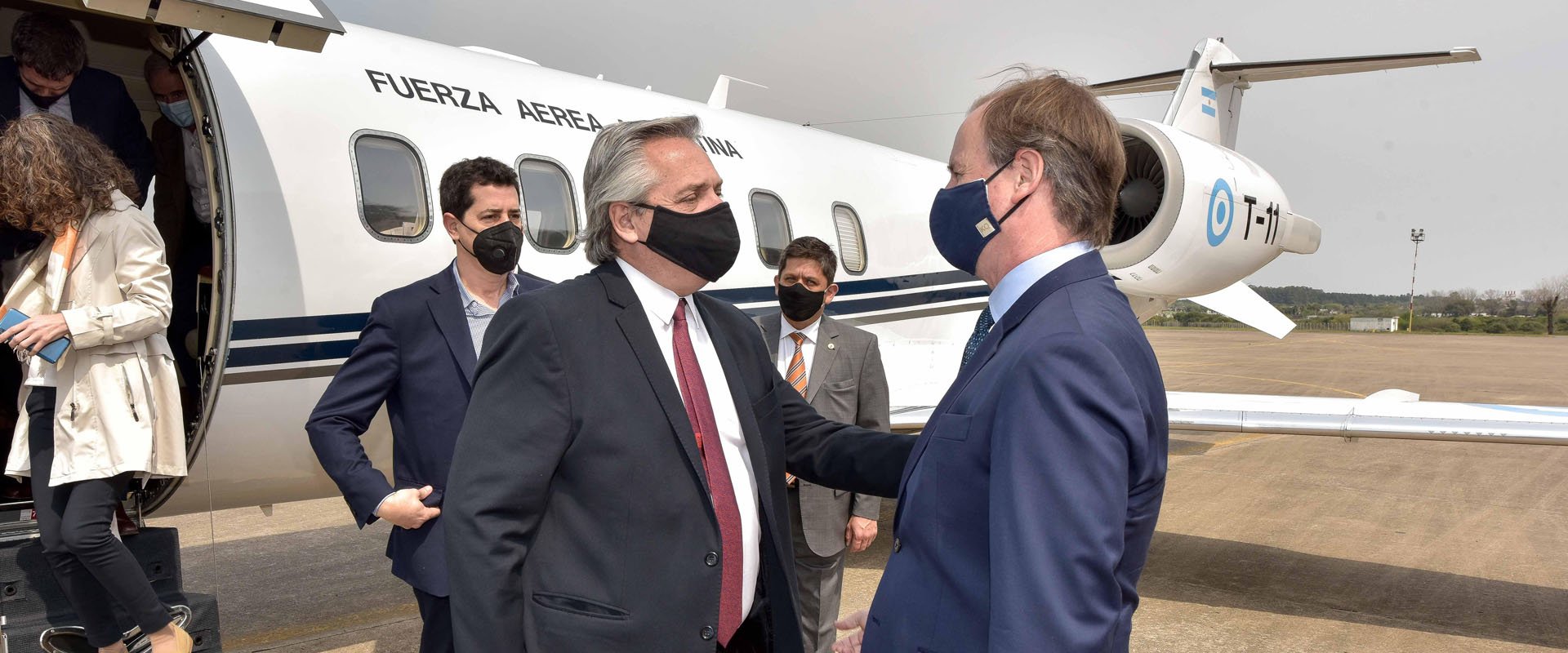 Acompañado por los ministros del Interior, Eduardo de Pedro, y de Obras Públicas, Gabriel Katopodis, además del titular del Ente Nacional de Obras Hídricas de Saneamiento (Enhosa), Enrique Cresto, el presidente Fernández llegó a las 11.35 a Paraná, donde fue recibido por el gobernador Bordet; la vicegobernadora Laura Stratta y el intendente local, Adán Bahl.