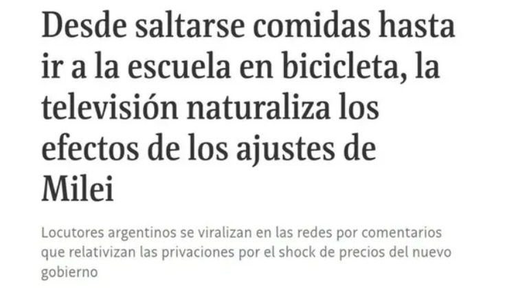 «El periodista Eduardo Serenellini es un ejemplo de ello. En un programa del canal argentino LN+, junto a su colega de bancada, Viviana Valles, intentó normalizar un posible recorte en la comida por el alza de precios en los alimentos», estableció Gavras, que también se refirió a Lorena Maciel y Guillermo Lobo en la señal TN.