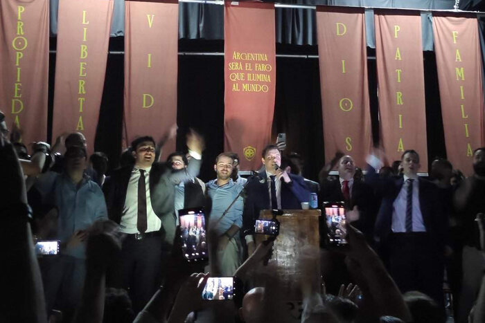 La derecha se organiza y combate. Con esas palabras, convocaron el viernes 15 de noviembre desde La Misa, el streaming libertario, al acto que se haría al día siguiente en la Sociedad Italiana de San Miguel. El acto será recordado porque uno de los oradores habló de ser el “brazo armado” de Javier Milei. Pasadas las horas y ante lo que se percibió como una apuesta hacia la violencia política, los referentes “Las Fuerzas del cielo” –como se llama la convergencia de distintos sectores de La Libertad Avanza (LLA)– se preocuparon por aclarar que el brazo es, en realidad, la mano que libra la batalla en redes sociales. Sin embargo, una retórica violenta con una estética fascista es una señal de alerta para quienes estudian la avanzada de las derechas.