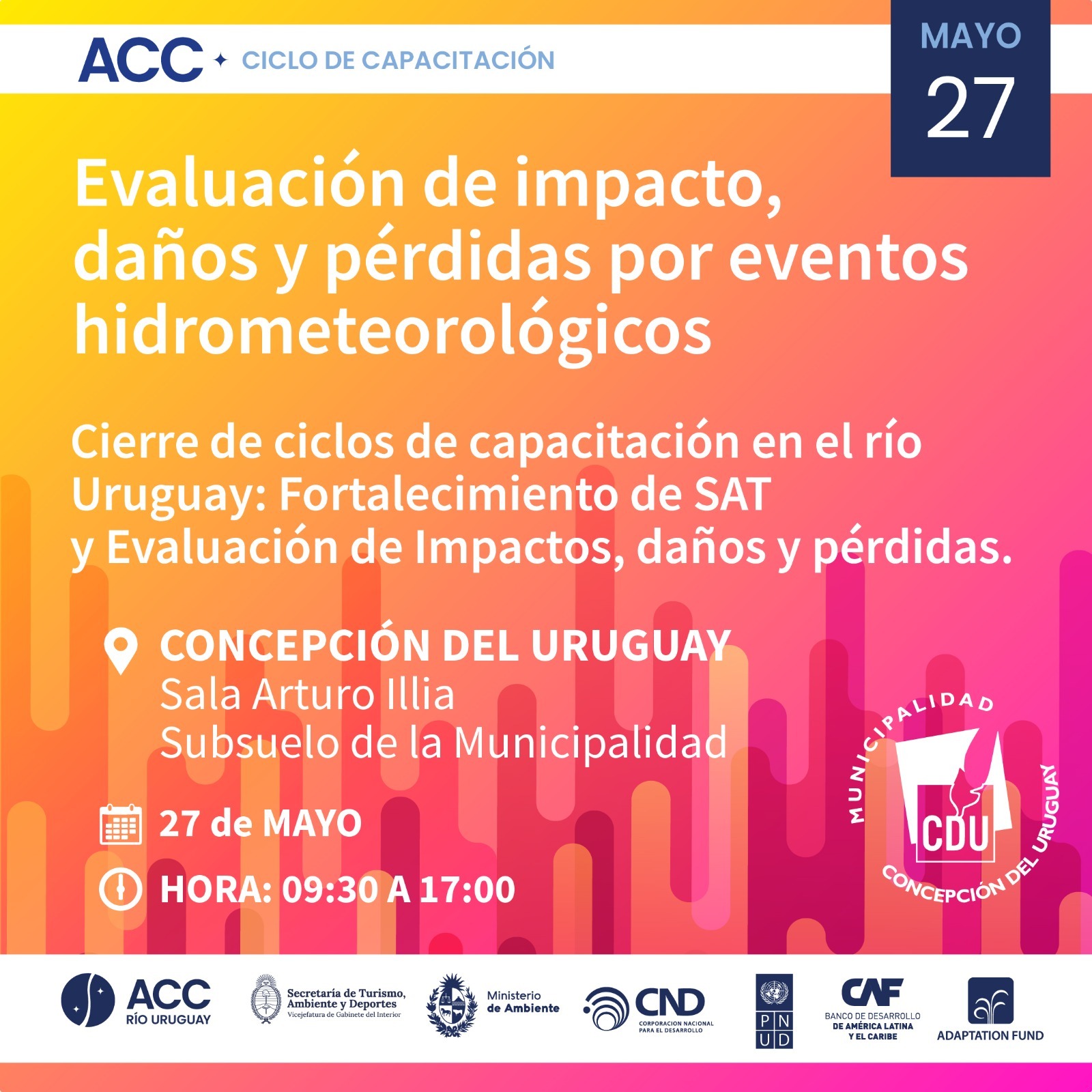 Estas capacitaciones se enmarcan en el Proyecto Binacional de Adaptación al Cambio Climático en ciudades y ecosistemas costeros vulnerables del Río Uruguay (ACC), financiado por el Fondo de Adaptación a través de la CAF – Banco de Desarrollo de América Latina.