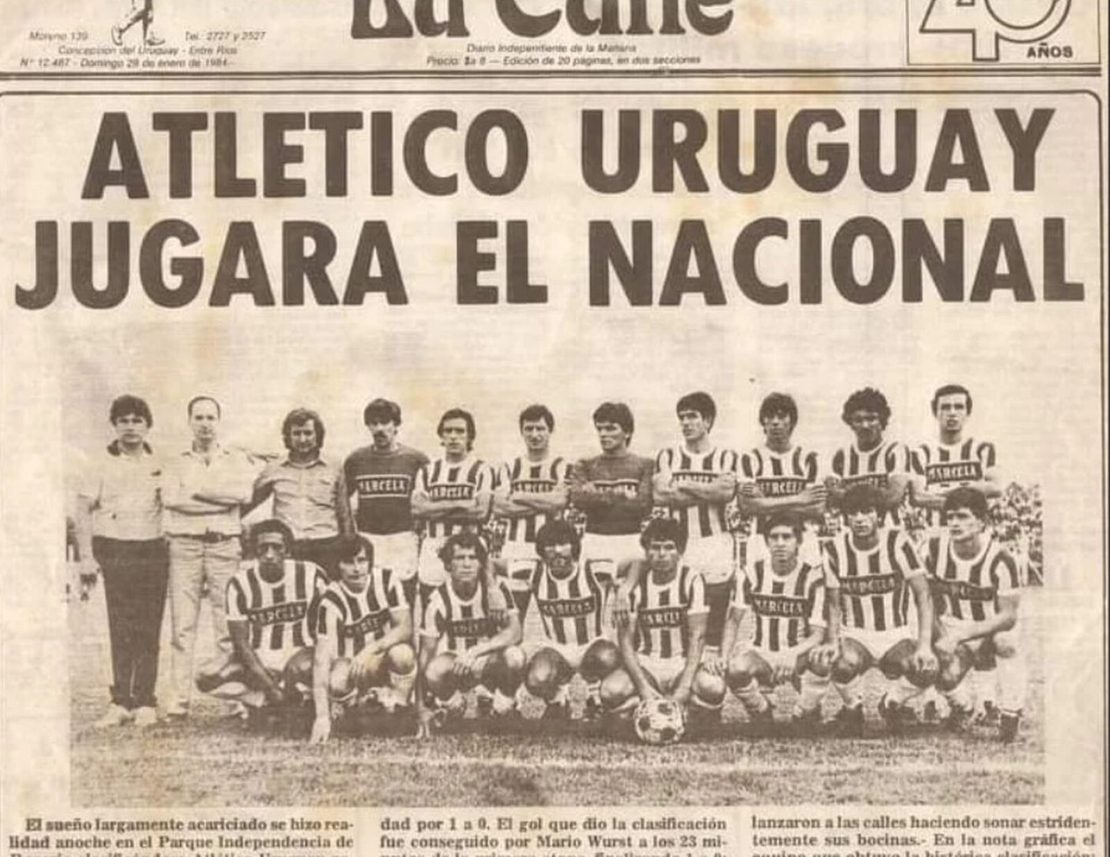 El equipo dirigido técnicamente por Raúl Orlando Sosa consiguió ese 28 de enero de 1984 el derecho a jugar en la máxima categoría del Fútbol Argentino, pese a caer en el partido de vuelta por 2 a 1, pero como consecuencia del gol en calidad de visitante y tras haberse impuesto por 1 a 0 en el juego de ida disputado siete días antes en el estadio Simón Luciano Plazaola de nuestra ciudad frente al club Renato Cesarini. El histórico gol de visitante para Atlético Uruguay en la ciudad de Rosario fue convertido por el ídolo del fútbol uruguayense Mario Wurst.
