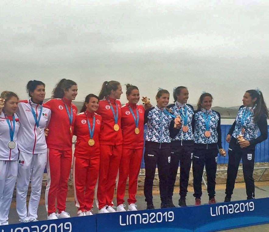 La embajadora del deporte uruguayense en los Juegos Panamericanos, Lima 2019, Magdalena Garro, fue tercera con el K4 argentino en los 500 metros.
