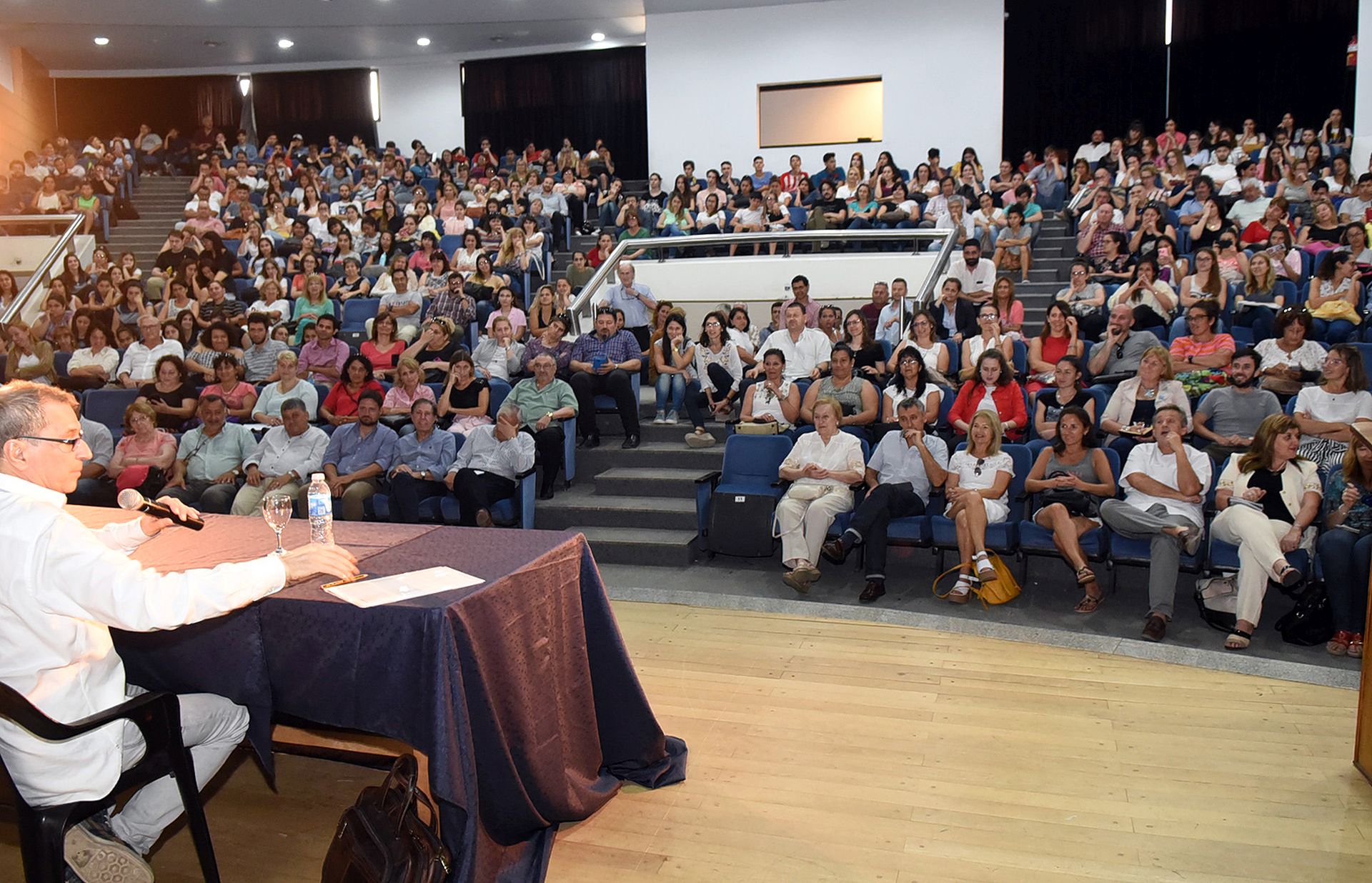El auditorio se vio colmado, con alrededor de 400 personas que asistieron a la charla, entre ellos muchos adolescentes, estudiantes de colegios secundarios y universitarios y también profesionales que accedieron a la charla ante la presencia de tan prestigioso disertante.