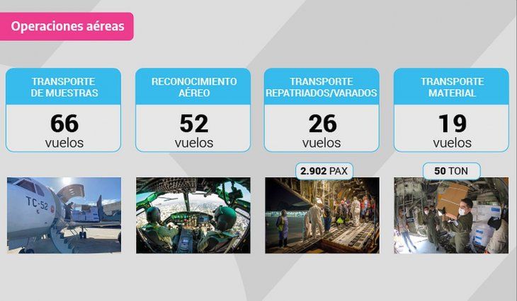 Dentro de las operaciones aéreas realizadas por las FFAA durante la pandemia se destacan: