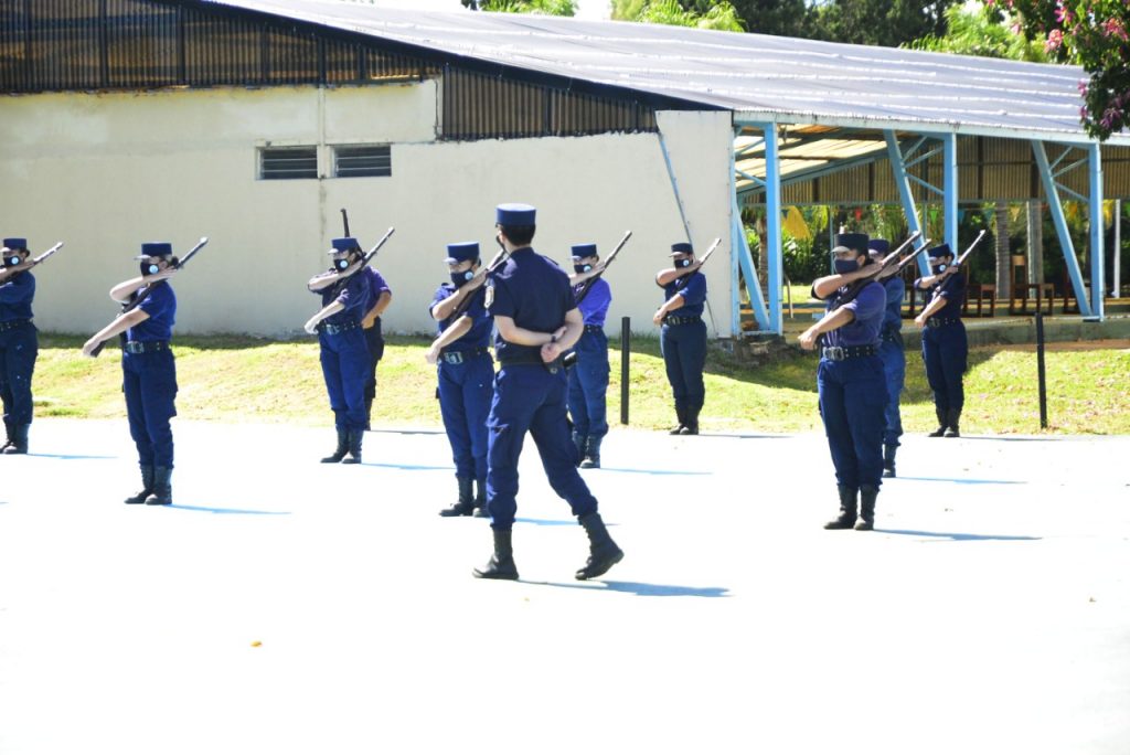 Estamos haciendo desde fin de año un reentrenamiento con tercero y segundo, porque ha habido chicos que de primero pasaron a segundo y no estuvieron nunca en el Instituto, fue todo virtual. Ese reentrenamiento tiene que ver con el orden cerrado, la presentación, el saludo, el pasaje desfile, cómo es la atención al público, los llamados telefónicos, el protocolo pandemia y el manejo de armamento.
