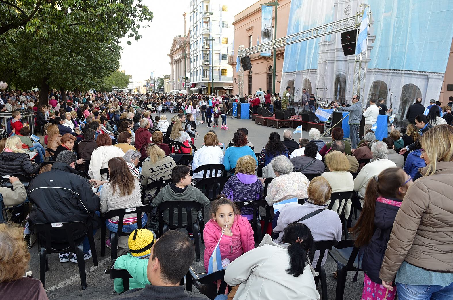Finalizado el Tedeum, se realizó en Plaza Ramírez el acto central, con el palco ubicado sobre la plaza, en la intersección de calles 9 de Julio y Urquiza. El palco estuvo presidido por Lauritto junto a las autoridades, funcionarios y concejales que ya habían participado de la ceremonia religiosa.