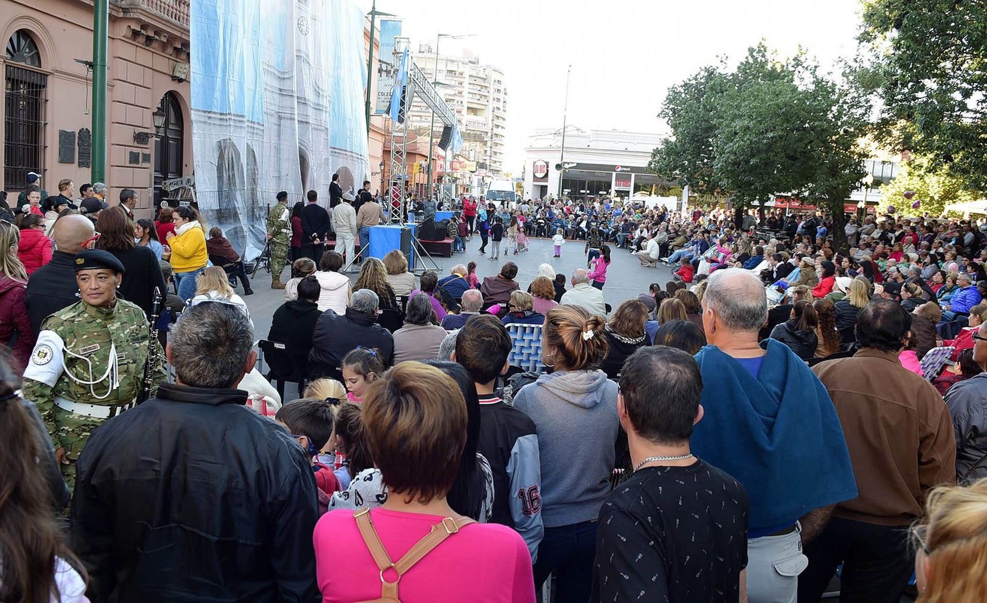Hacia el final de la tarde cultural y patriótica actuó la Banda del Ejército Batallón Blindados II, cerrando con el arrío de la Bandera Nacional del mástil principal de plaza Ramírez. Esta programación artística fue organizada por la Dirección de Cultura de la Municipalidad.