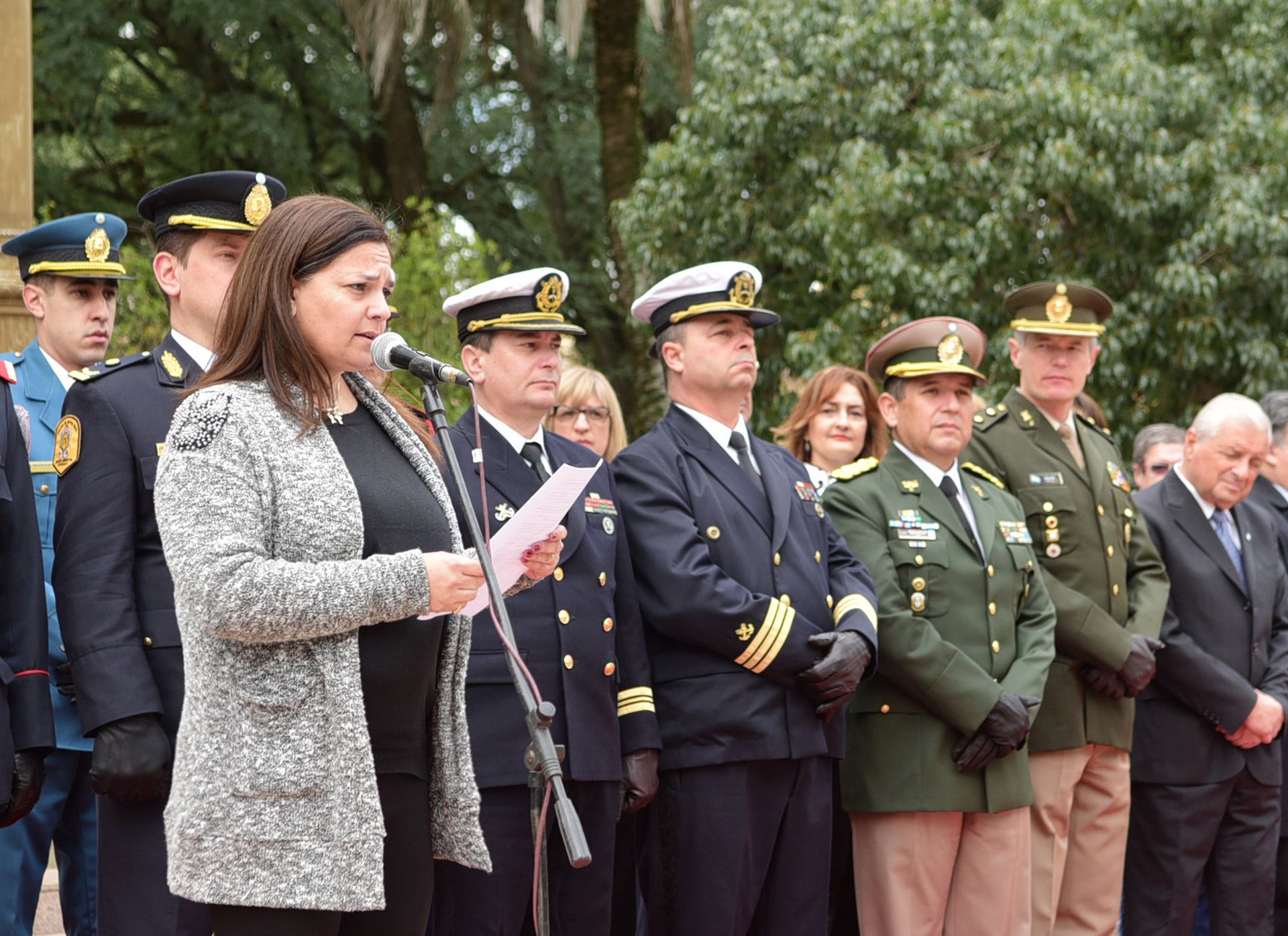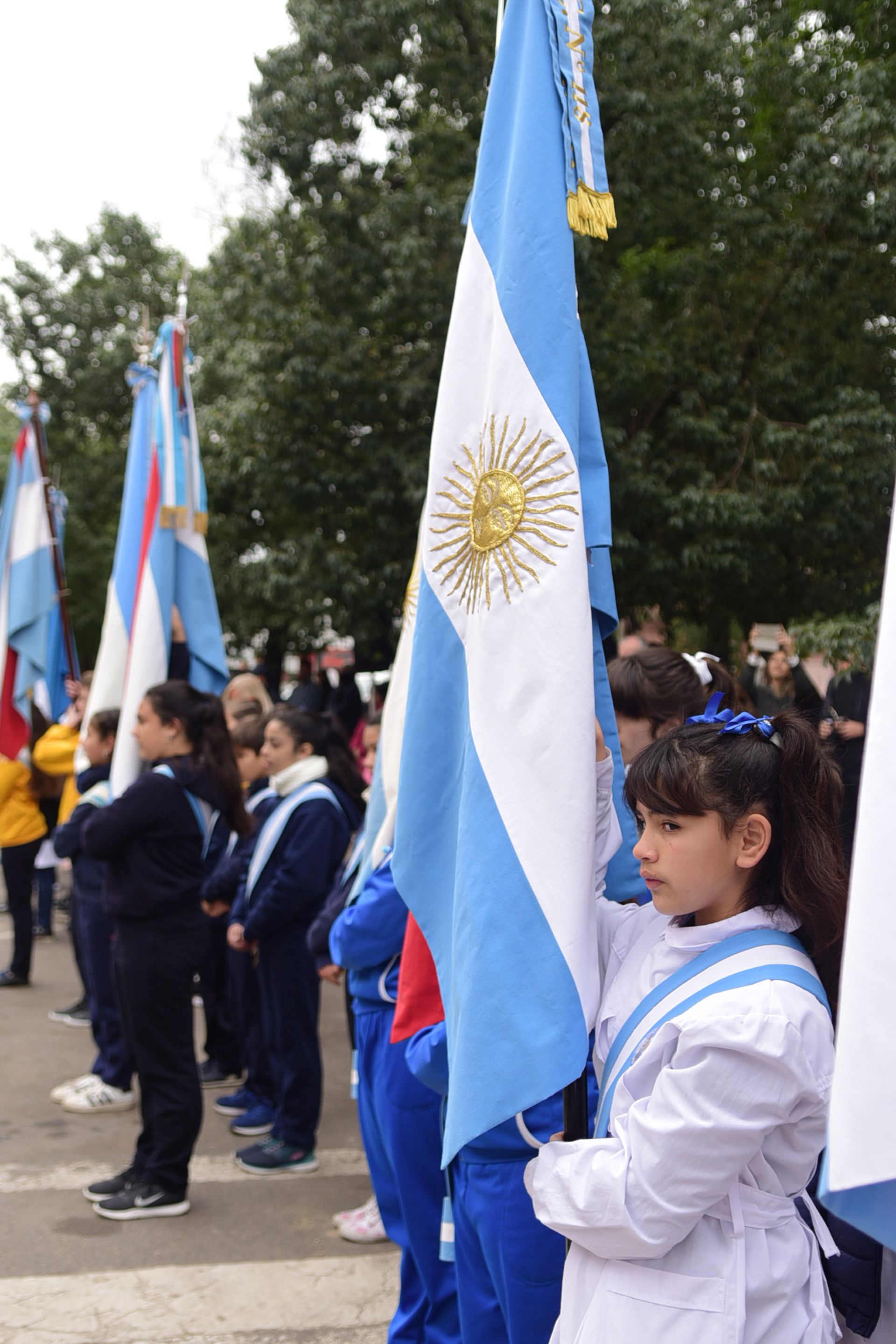 Abanderados de establecimientos educativos y de las Fuerzas dieron marco a la conmemoración que contó con palabras de la Alumna Milagros Acosta de 7mo 1era Técnico en Gastronomía de la EET N°1 Ana Urquiza de Victorica.