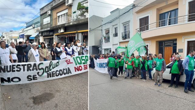 Afiliados a Iosper de Concepción del Uruguay hicieron un abrazo simbólico solidario para expresar su rechazo a la creación de OSER.