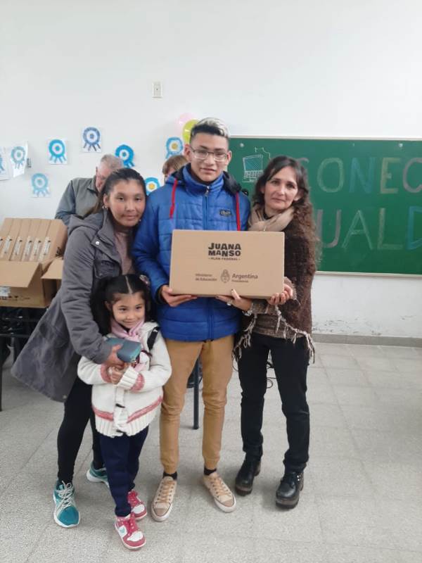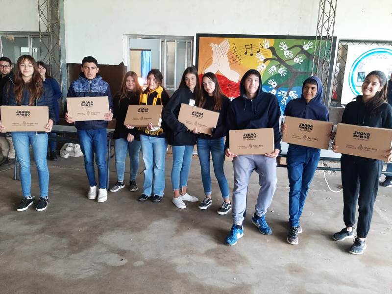 Recibieron -de manos de la directora departamental de Escuelas Uruguay, profesora Ana María Díaz, y de las supervisoras de Nivel Secundario, profesoras Luisa Ledesma y Yamina Echave- los alumnos y alumnas de las Escuelas N°25 Profesor Roberto L. Nouche, N°31 General José de San Martín, N°20 Presbítero Juan Bautista Rolando y N°7 Héroes de Malvinas; llegando a entregarse en la fecha más de 230 equipos.