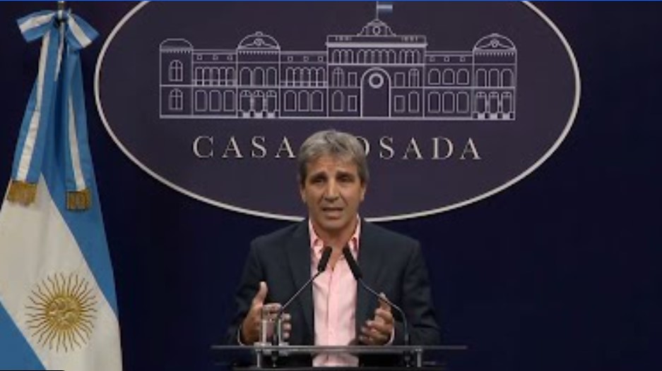 El anuncio se conoció, durante una conferencia de prensa que el ministro de Economía, Luis Caputo, ofreció en la Casa de Gobierno.