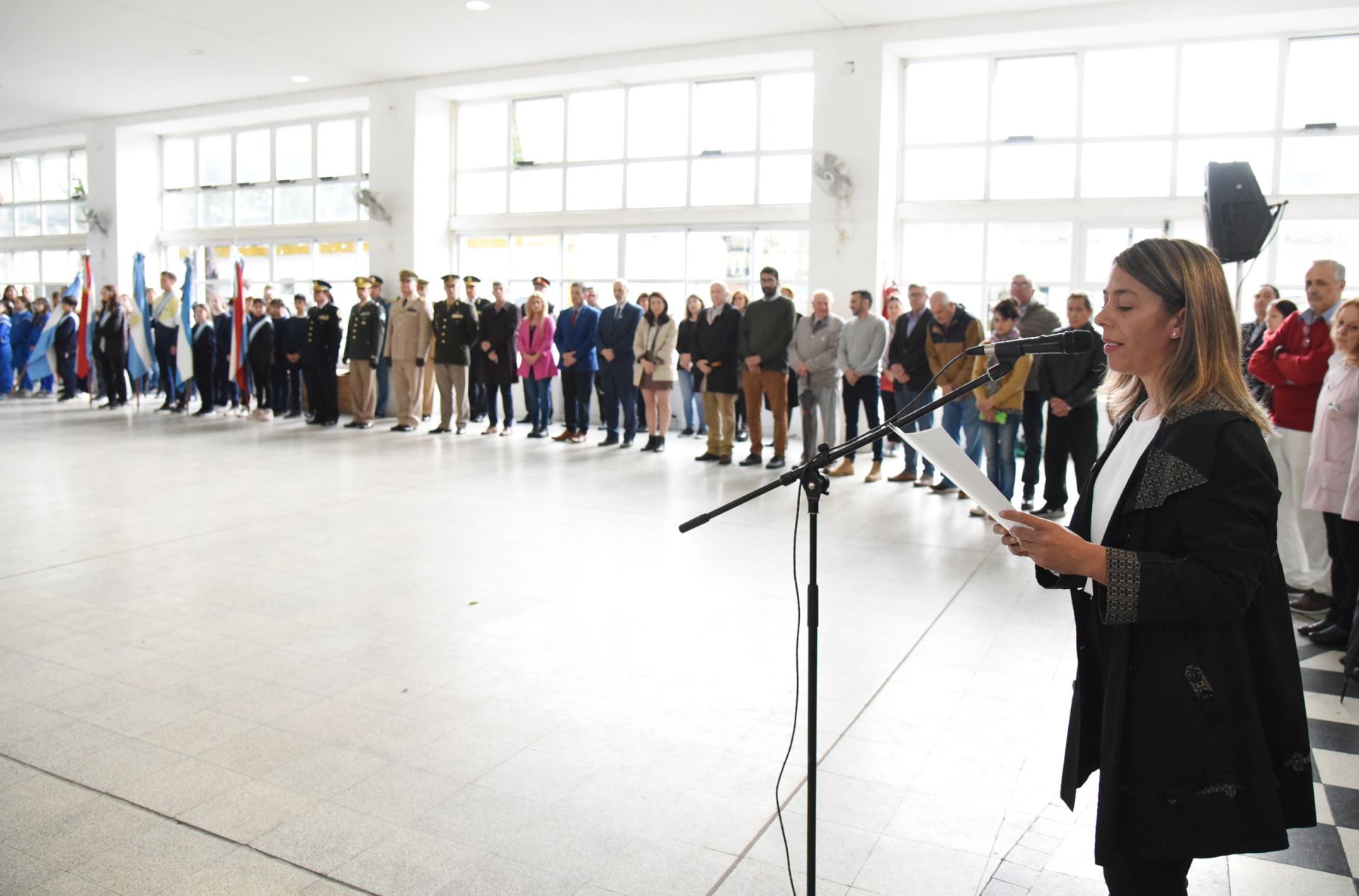 A su vez, tras la entonación de la Marcha de San Lorenzo, la concejala -y también profesora- Valeria Jauregui, dedicó unas palabras a la jornada: “Conmemoramos un nuevo aniversario del paso a la inmortalidad del Gral. Don José de San Martín, Padre de la patria y figura indiscutible de nuestra nación”.