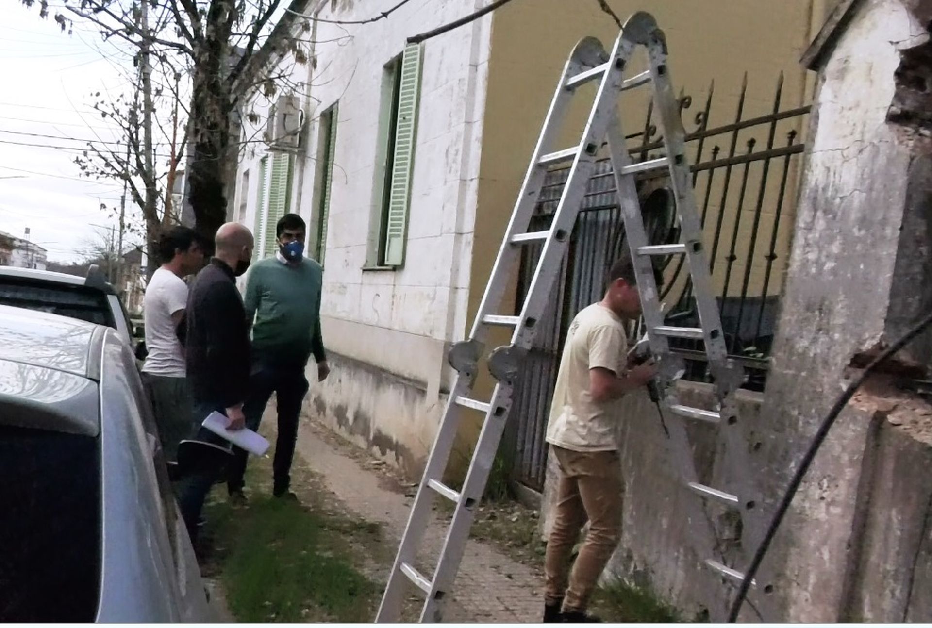 En esta primera etapa se avanza en la demolición del muro. Los trabajos fueron observados este viernes por el secretario de Salud, Miguel Toledo; y Herán Molina Rearte, coordinador de Planeamiento.