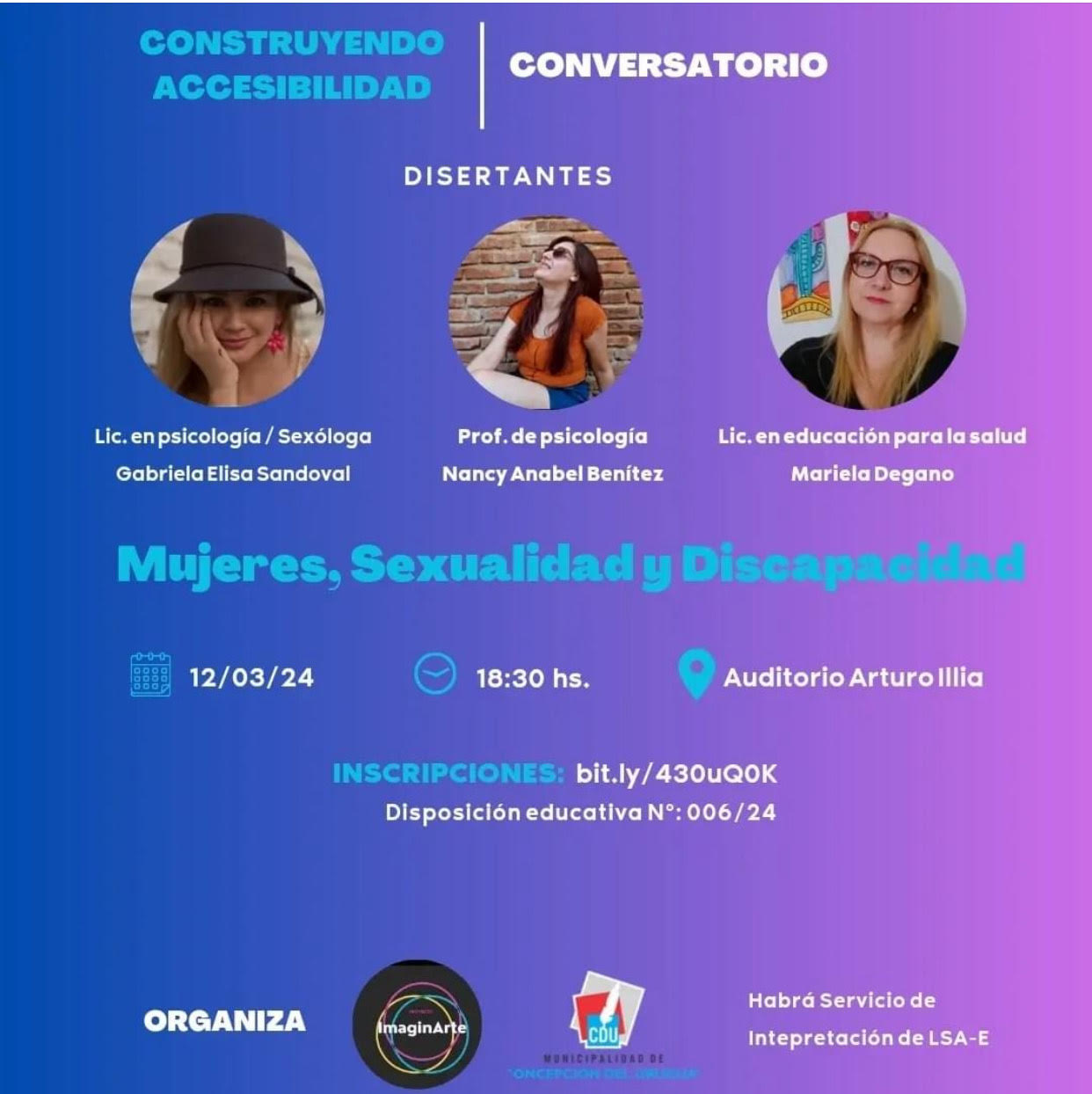En el marco del Día Internacional de la Mujer, el martes 12 de marzo se llevará a cabo el conversatorio «Construyendo Accesibilidad: Mujeres, Sexualidad y Discapacidad». La actividad, organizada por «Proyecto ImaginaArte» en colaboración con la Municipalidad, busca abordar un tema crucial pero a menudo ignorado: la sexualidad en personas con discapacidad. La jornada se desarrollará en el Auditorio Arturo Illia desde las 18:30 horas.