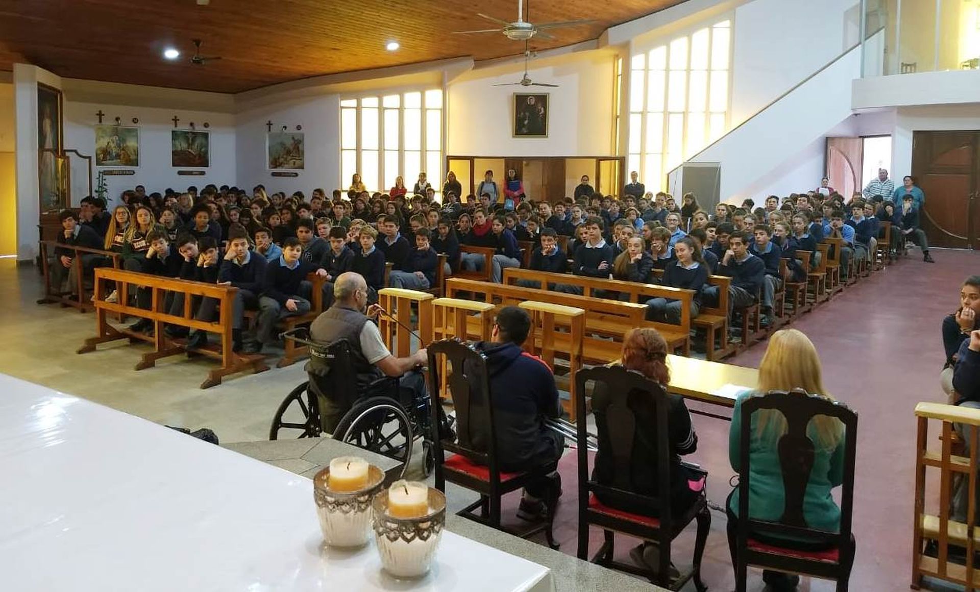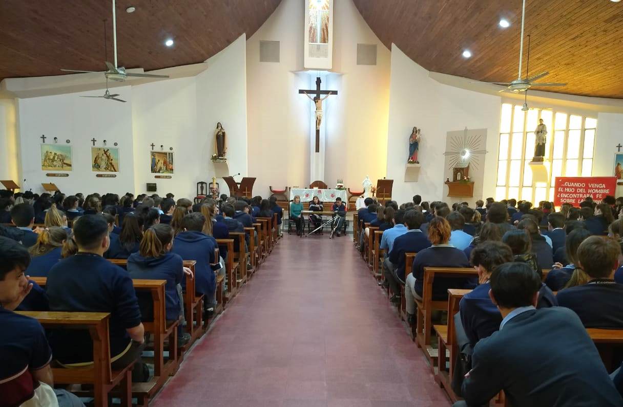 En tal marco, este lunes se desarrolló una charla en parroquia Santa Teresita, destinada a estudiantes de Don Bosco, en el Mes de la Inclusión. Ante un importante público estudiantil, contaron sus experiencias Aixa Mega, Roberto Galina, María Julia Moren y Marcos Domínguez.
