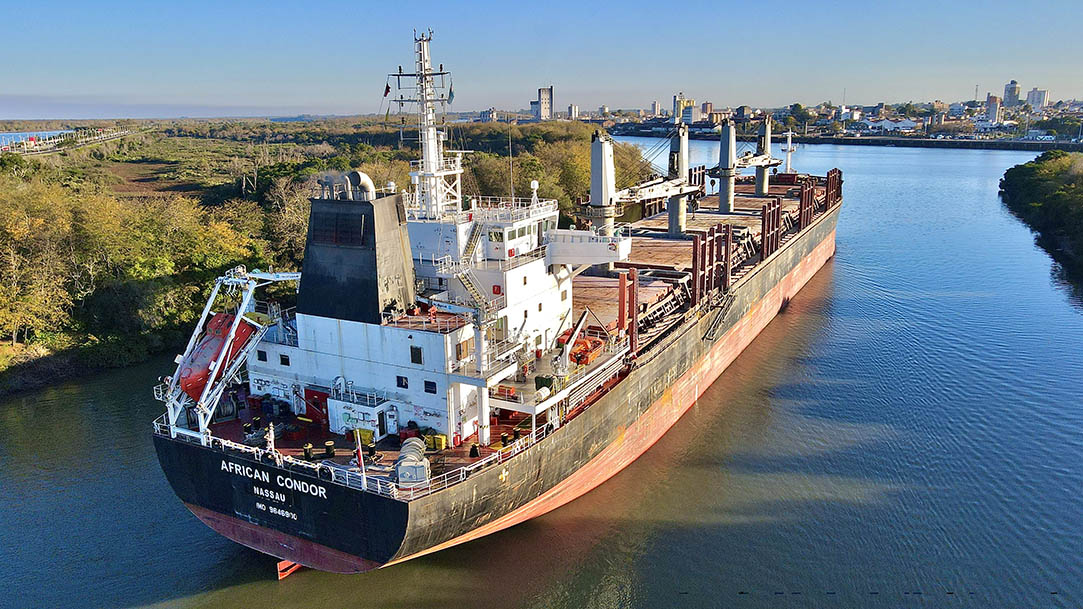 Este jueves por la tarde amarró en los muelles 3 y 4 del puerto de Concepción del Uruguay el buque African Condor para llevar adelante una nueva exportación de troncos de pino a granel.