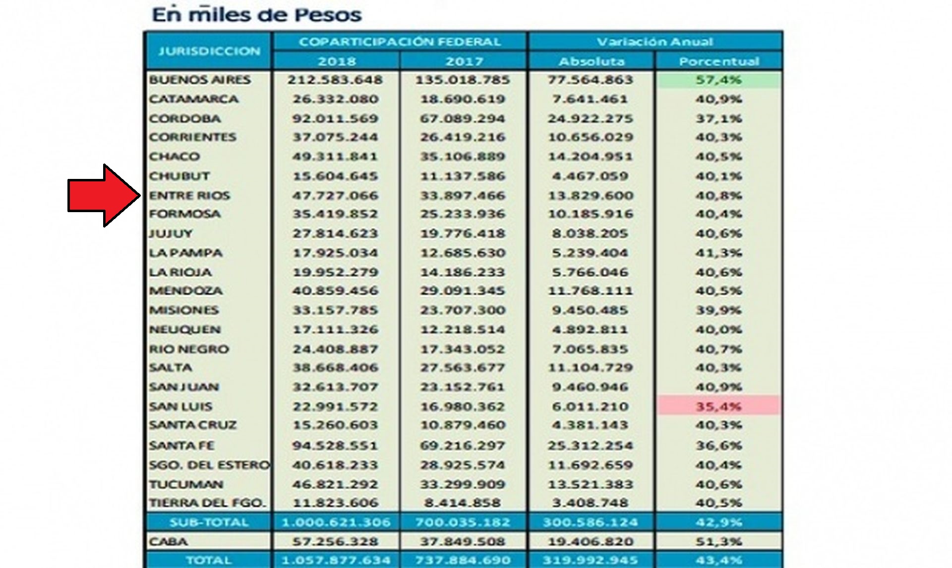 En total, las 23 provincias y CABA, durante 2018 recibieron $ 1,058 billón, un 43,4% más que en el acumulado de 2017, con una mejora real de 6,78%, según el informe difundido este miércoles por la consultora Economía & Regiones.