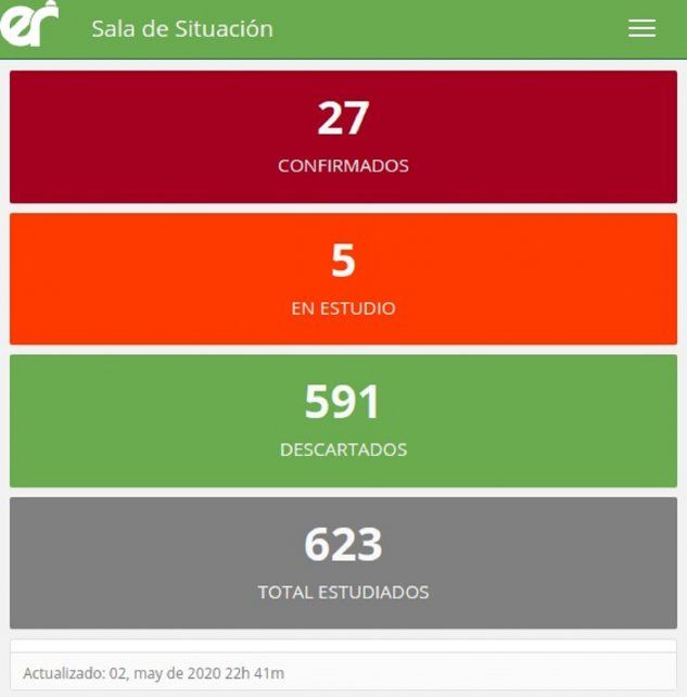 De ese modo, en la provincia son 27 los casos confirmados, 5 permanecen casos en estudio y 591 ya han sido descartados; en tanto que en total se han estudiado 623 casos.