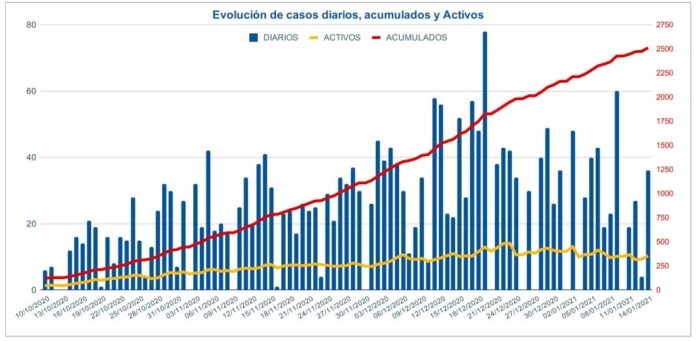 La curva de pacientes activos, uno de los puntos de mayor atención en la vigilancia epidemiológica que observan las autoridades sanitarias, se mantiene estable luego de pasar por el pico más alto alcanzado el 23 de diciembre pasado cuando se llegó a 484 pacientes activos, con 35 internados, y 10 de ellos en terapia intensiva.